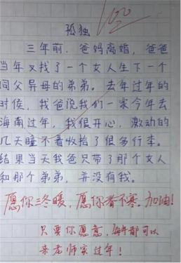作文題目為《孤獨》,短短一百字不到的文章中流露出溢出螢幕的悲傷情緒。