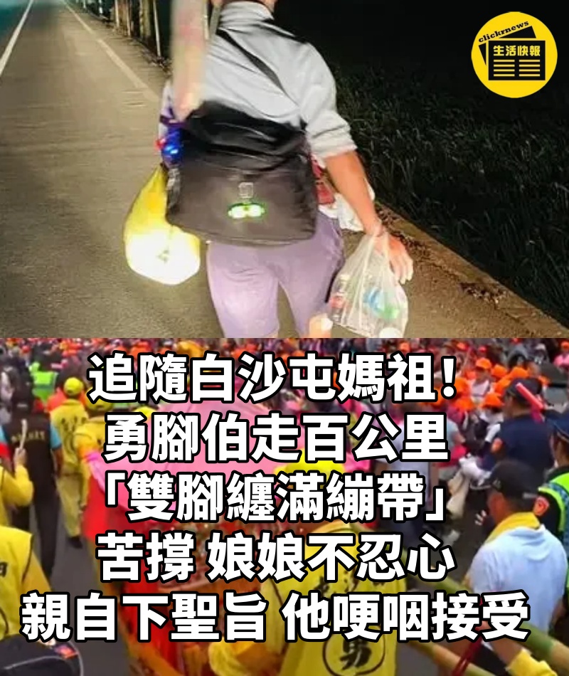 追隨白沙屯媽祖!勇腳伯走百公里「雙腳纏滿繃帶」苦撐 娘娘不忍心「親自下聖旨」他哽咽接受