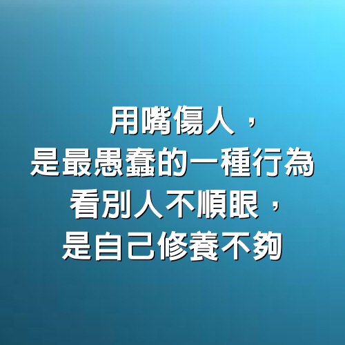 用嘴傷人,是最愚蠢的一種行為。看別人不順眼,是自己修養不夠