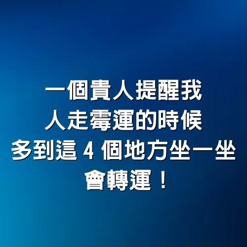 一個貴人提醒我:人走霉運的時候,多到這4個地方坐一坐,會轉運!