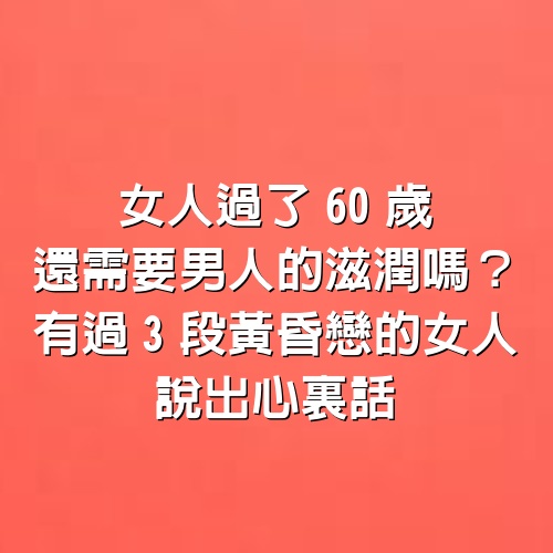 女人過了60歲,還需要男人的滋潤嗎?有過3段黃昏戀的女人說出心裏話,千萬別不好意思看