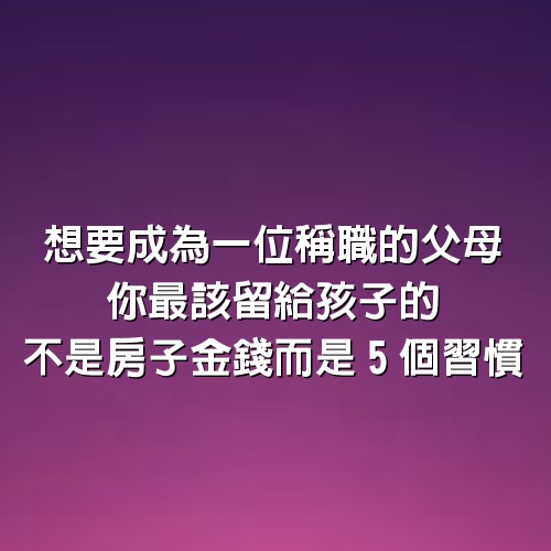 想要成為一位稱職的父母,你最該留給孩子的不是房子、金錢,而是5個習慣