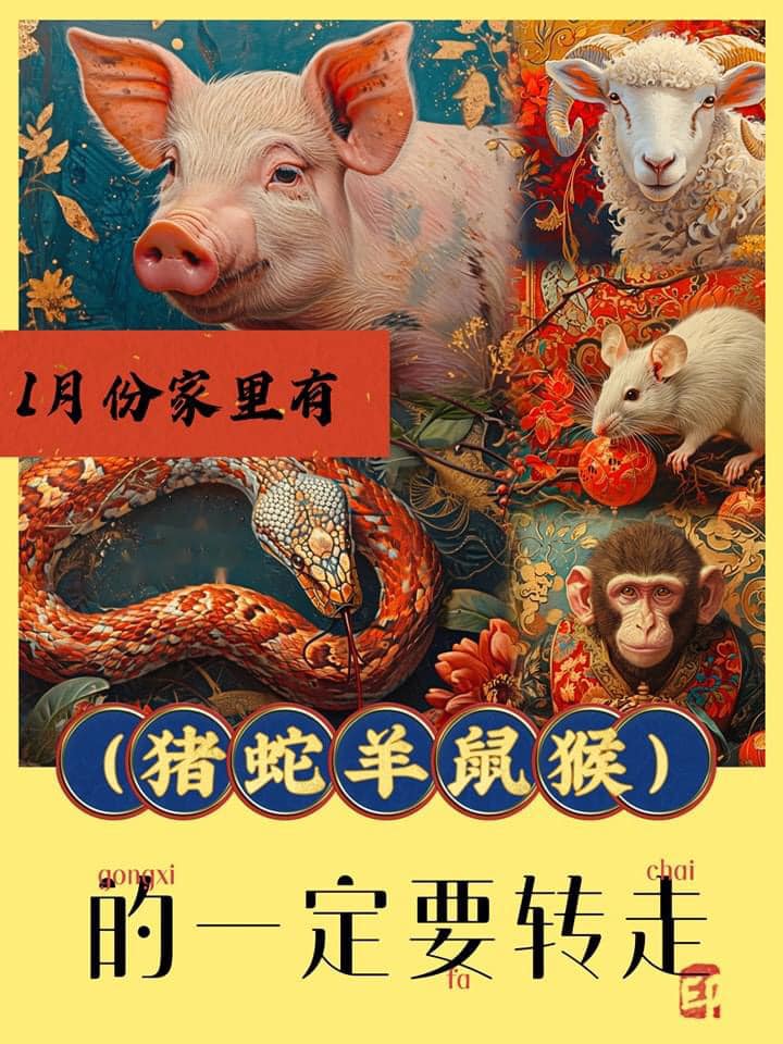 1月份家裡有「豬蛇羊鼠猴」的人,一定要轉走!沒有就算了。