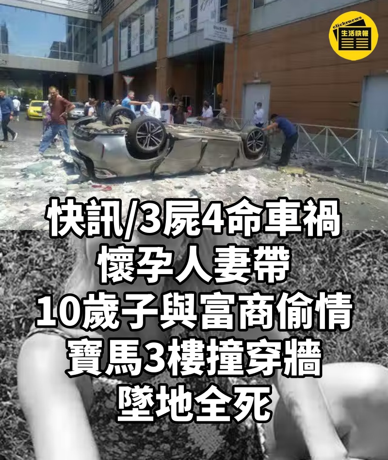 快訊/3屍4命車禍│懷孕人妻帶10歲子與富商偷 情 寶馬3樓撞穿牆墜地全死