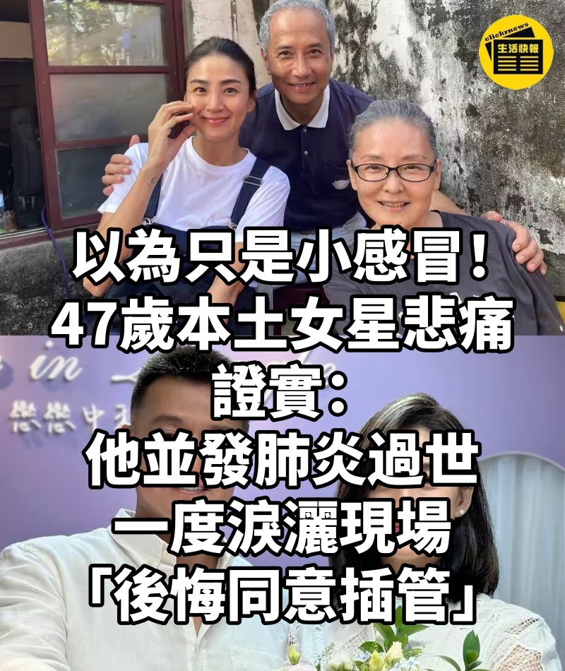 以為只是小感冒!47歲本土女星悲痛證實「他並發肺炎過世」一度淚灑現場「後悔同意插管」