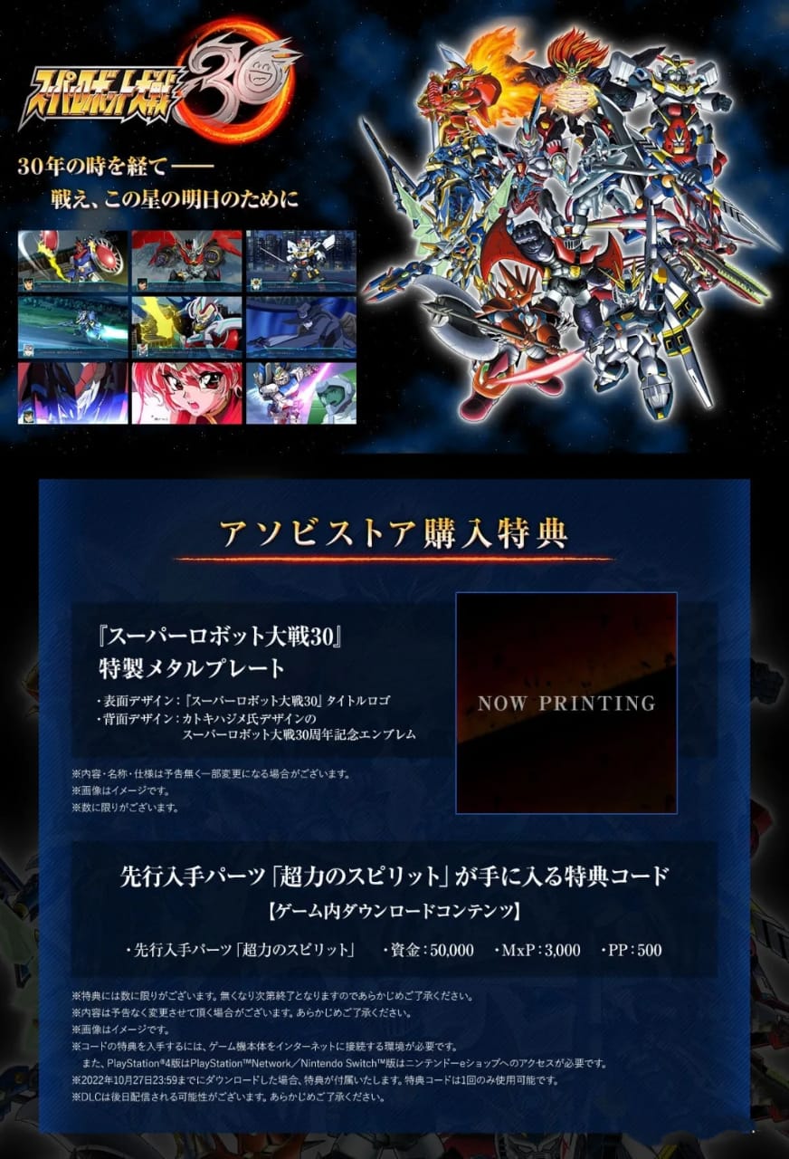 《超級機器人大戰30》發布,超限定版帶MR魂主角機!