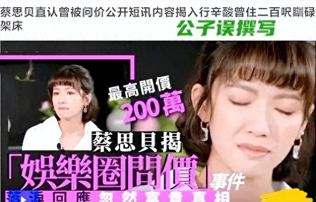 在某次訪談中,蔡思貝自曝曾收到一則包夜短信,對方開口就提出200萬的開價。