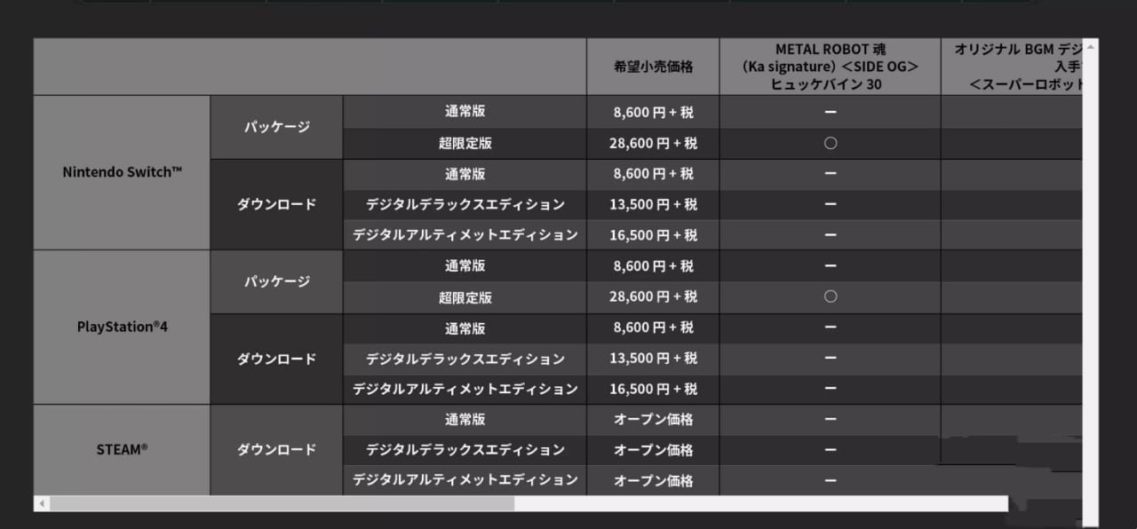 其中PS4和NS實體版中,有一個超限定版,這個超限定版附屬了一個MR魂主角機模型——兇鳥30。
